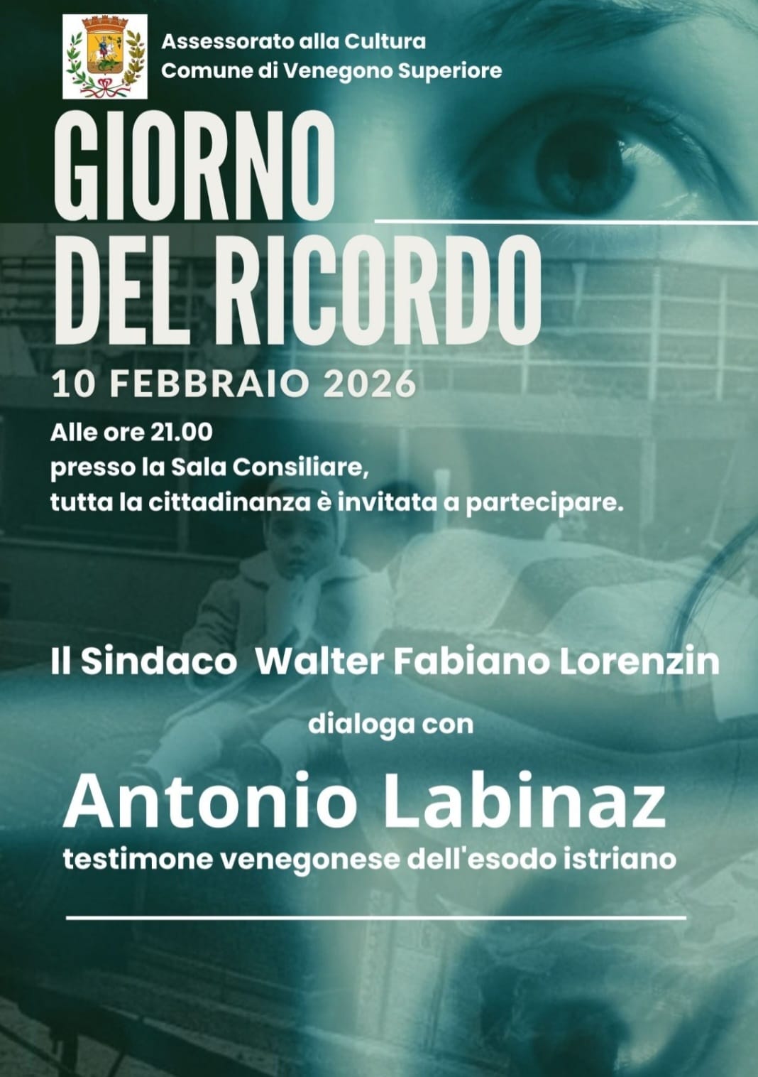 In occasione del Giorno del Ricordo, l’Amministrazione Comunale organizza una serata commemorativa dedicata alla memoria delle vittime delle foibe e dell’esodo giuliano-dalmata, momento di riflessione e condivisione dei valori della memoria storica e della convivenza civile, che si terrà Martedì 10 Febbraio 2026 alle ore 21.00 presso la Sala Consiliare, come da Locandina in allegato.